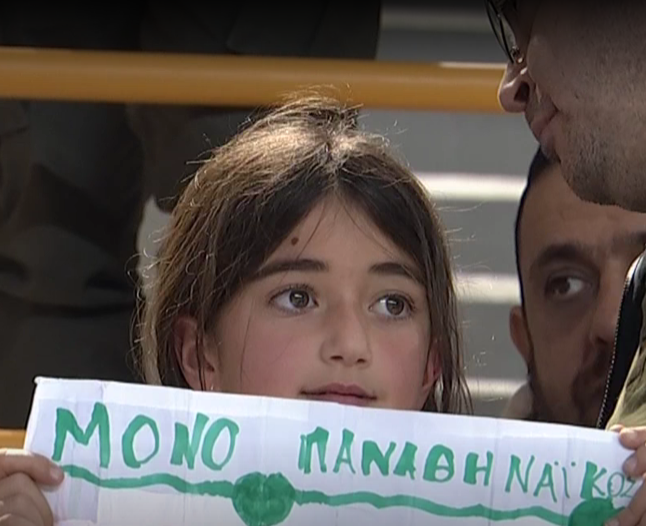 Στο ημίχρονο, ένα κοριτσάκι κράτησε ένα κομμάτι χαρτί , το οποίο έγραφε «Μόνο Παναθηναϊκός».