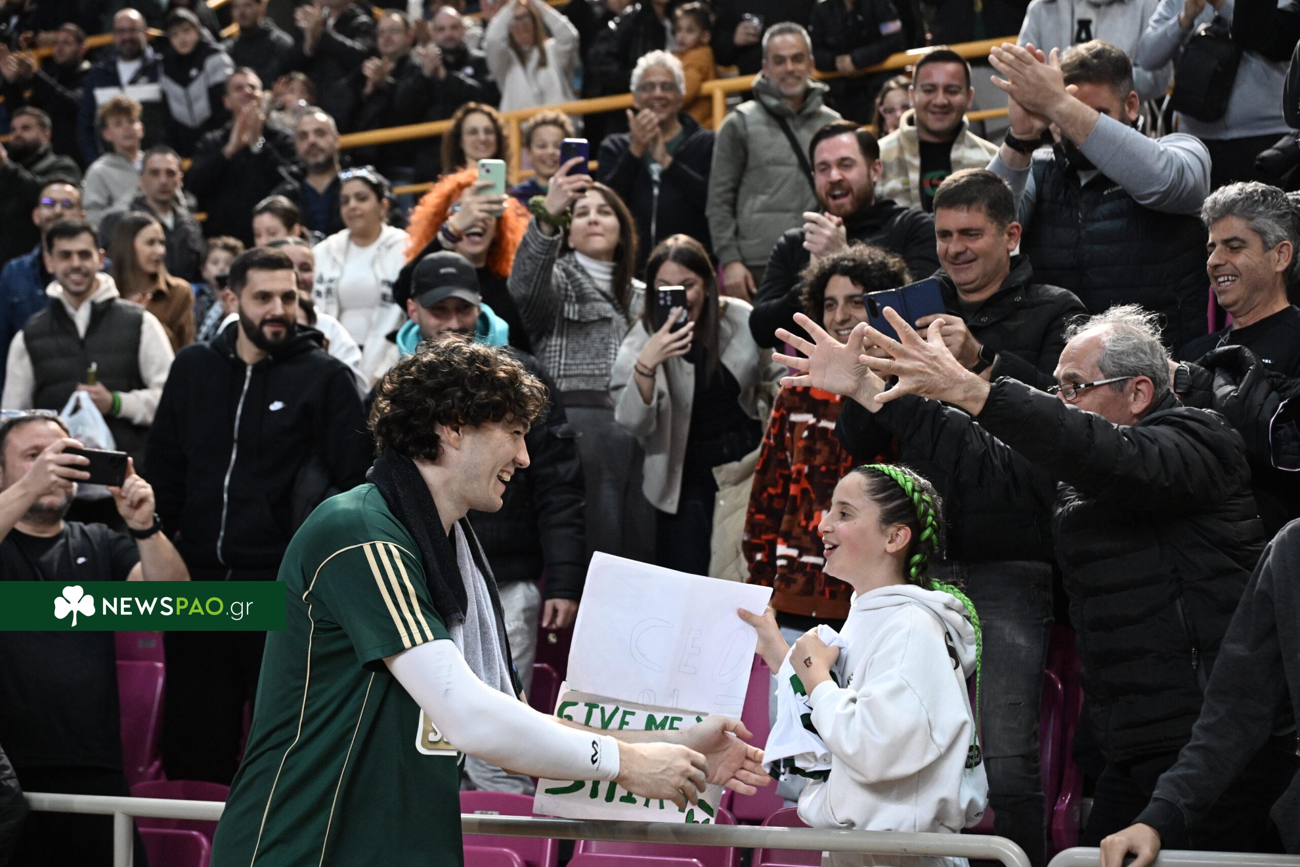 Ο Τούρκος φόργουορντ είδε το μήνυμα, την χειροκρότησε εκείνη τη στιγμή και κράτησε την κίνηση στο μυαλό του. Μετά τη λήξη, πλησίασε το σημείο που βρισκόταν η νεαρή φίλαθλος και της έδωσε την εμφάνισή του, χαρίζοντας μια σκηνή που ξεχώρισε στο κλειστό.