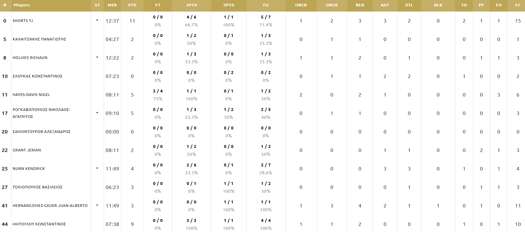 Παναθηναϊκός - Ηρακλής 46-26: Οι πόντοι των παικτών στο ημίχρονο (pic)