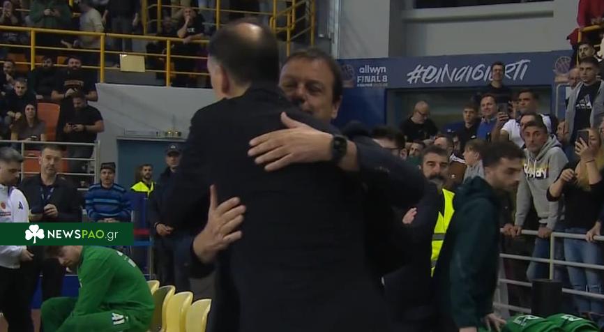 Ο Γιώργος Μπαρτζώκας πήγε στον πάγκο του Παναθηναϊκού Aktor και αγκάλιασε το συνάδελφό του, Εργκίν Αταμάν.