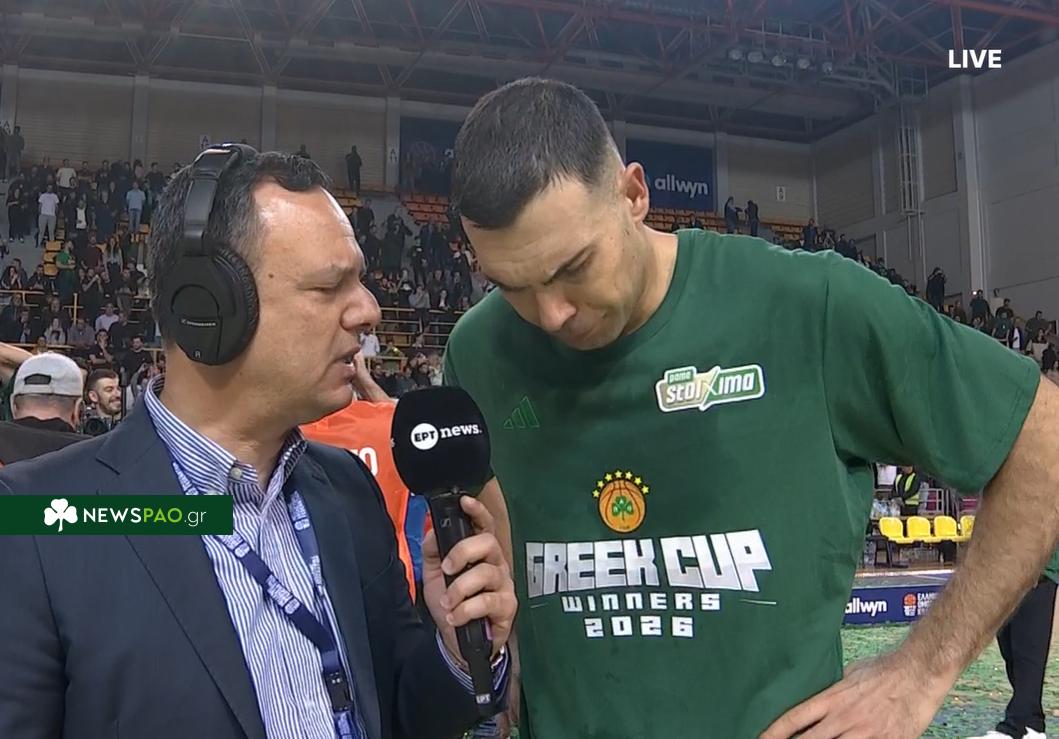 Μετά την απονομή, ο Κώστας Σλούκας μίλησε για την εικόνα της ομάδας του, επισημαίνοντας ότι ο Παναθηναϊκός έπαιξε από την αρχή μέχρι το τέλος με κυριαρχία, ενώ αναφέρθηκε και στη δύσκολη περίοδο που προηγήθηκε μέσα στη σεζόν.