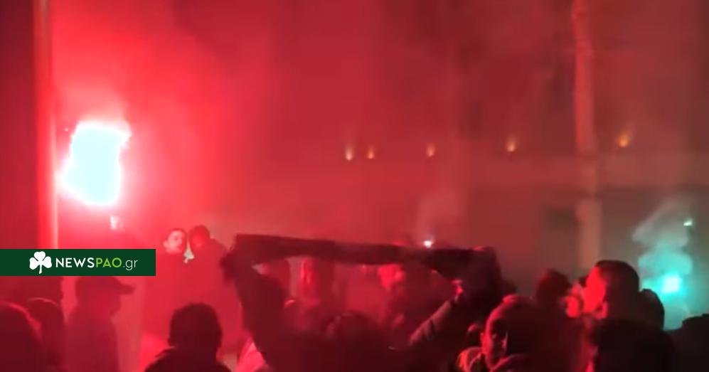 Πλήθος φίλων της ομάδας βρέθηκε έξω από το κατάλυμα των «πρασίνων» για να αποθεώσει τους Κυπελλούχους Ελλάδας, μετά τη νίκη επί του Ολυμπιακού με 79-68.