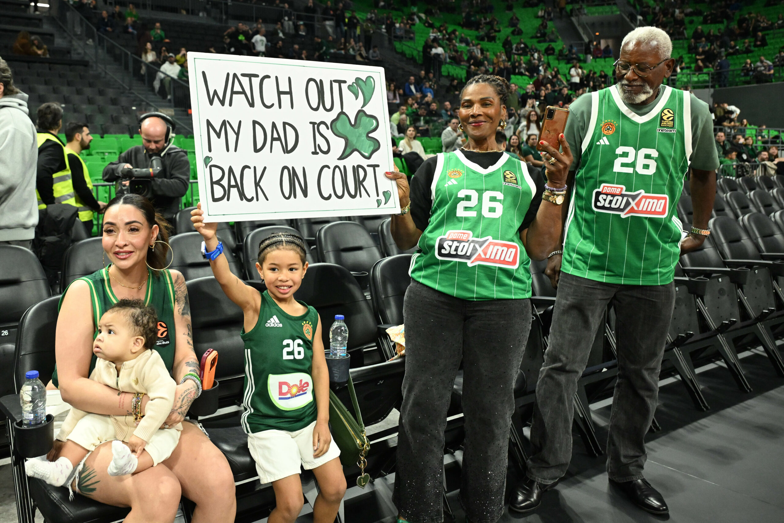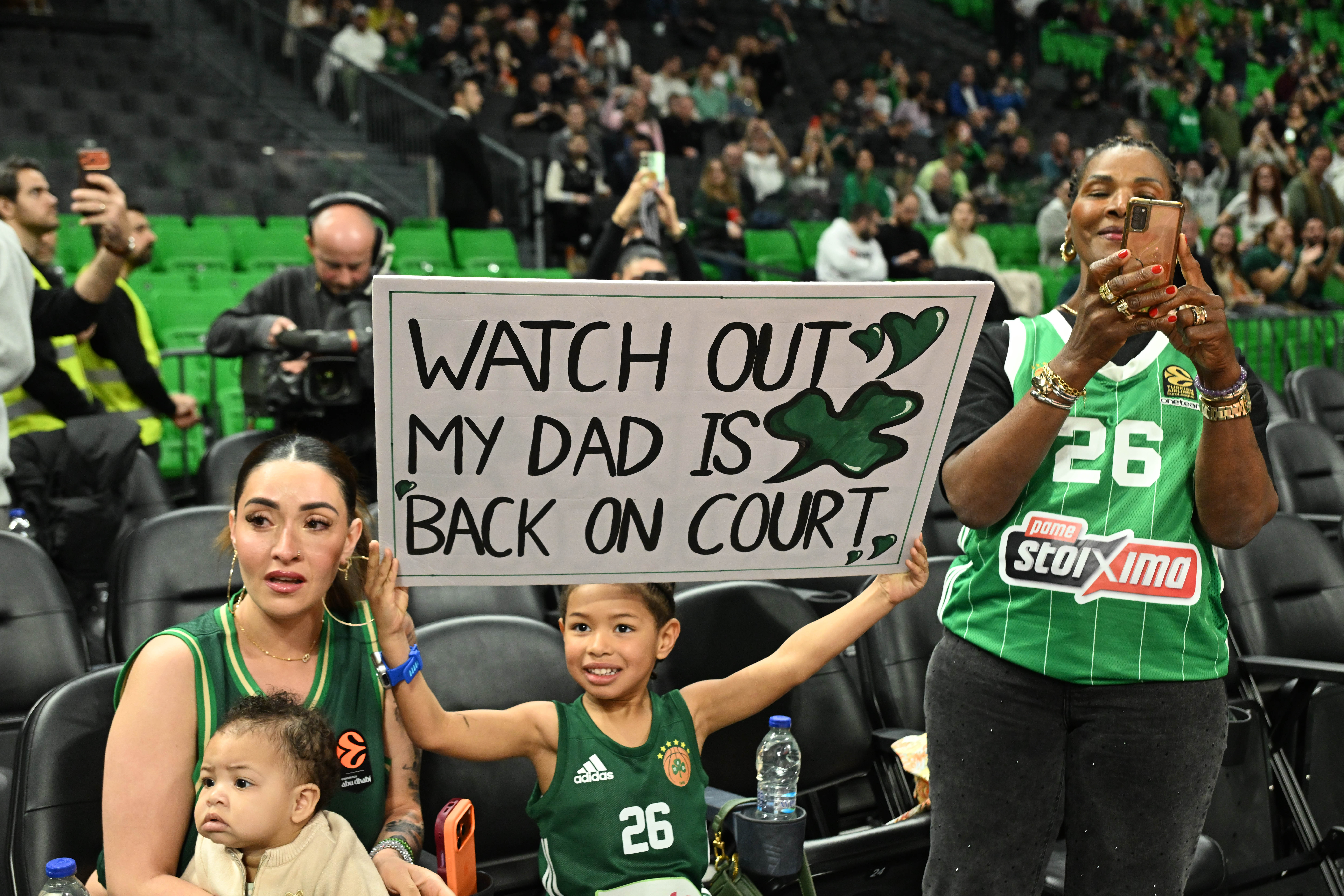 Η Τρέισι Λεσόρ δεν συγκράτησε τα δάκρυά της στην αγωνιστική επανεμφάνιση του Ματίας Λεσόρ με τα πράσινα στο Telekom Center Athens κόντρα στη Ζαλγκίρις.