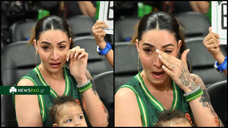 Η σύντροφος του Γάλλου σέντερ του Παναθηναϊκού δεν συγκρατήθηκε και δάκρυσε με το φωτογραφικό φακό να απαθανατίζει τη στιγμή.