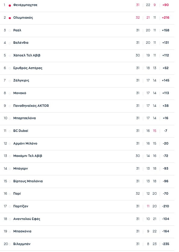 «Δώρο» της Παρτιζάν στον Παναθηναϊκό - Η βαθμολογία της Euroleague (pic)