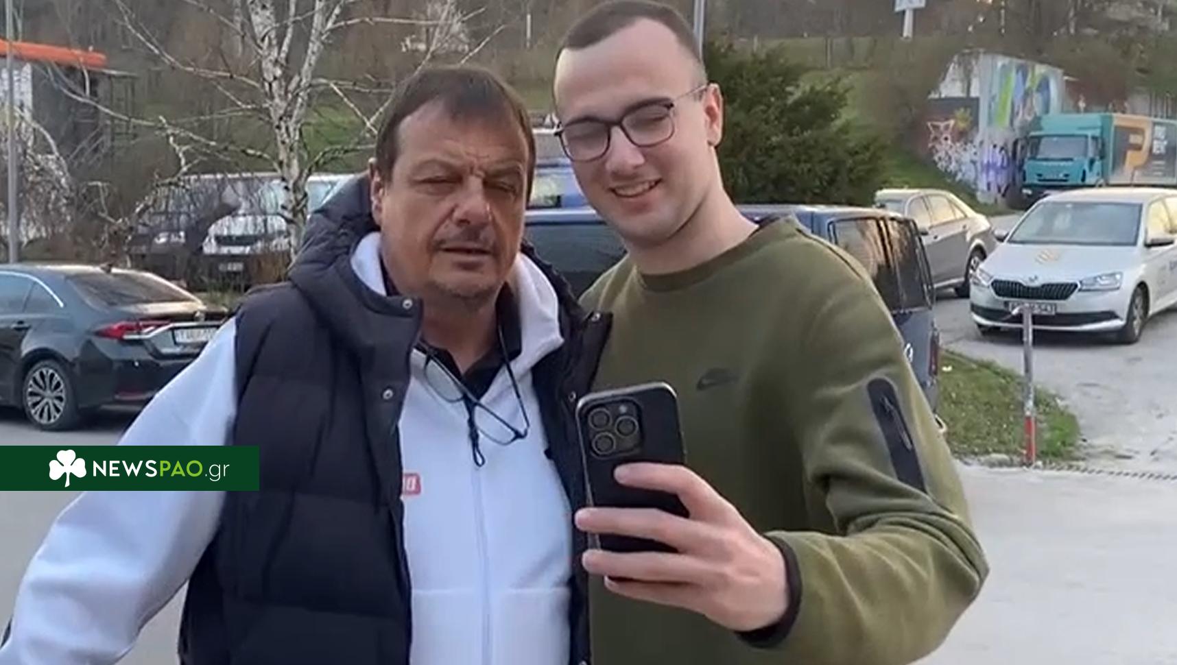 Ο Τούρκος προπονητής εμφανίστηκε ιδιαίτερα ήρεμος και αποδέχτηκε να βγάλει σέλφι κατά την είσοδό του στο γήπεδο για τον αγώνα με την Ντουμπάι BC.