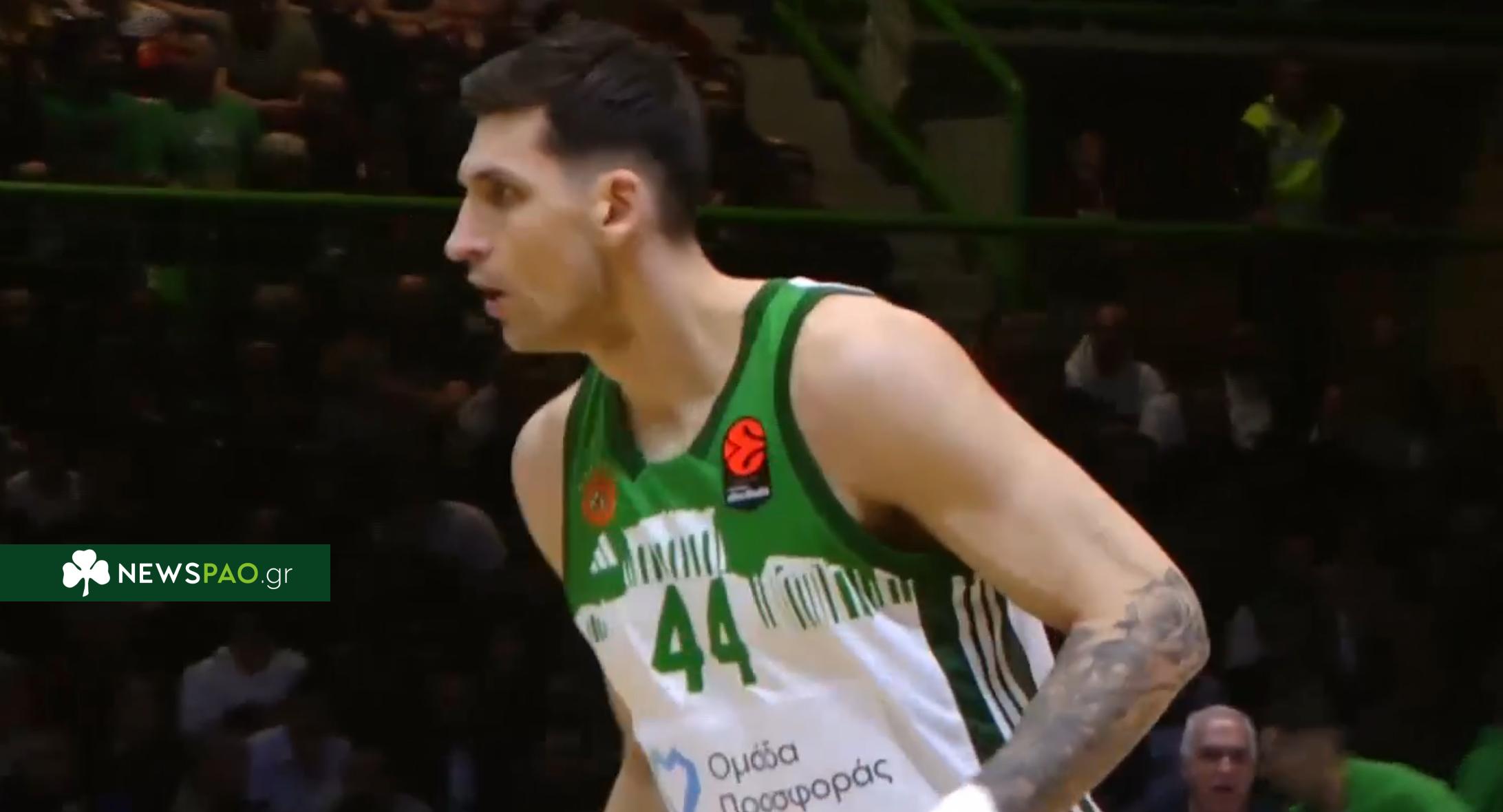 Με δύο διαδοχικά τρίποντα ο Ντίνος Μήτογλου προσέφερε πολύτιμη βοήθεια στην επίθεση του Παναθηναϊκού.