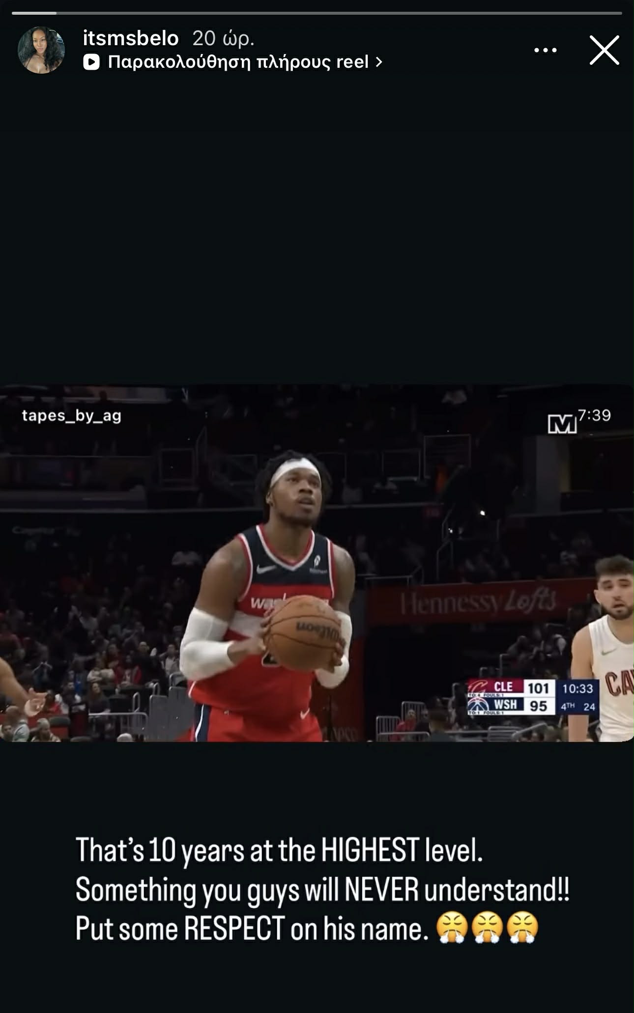 Αυτό προκάλεσε νέα αντίδραση από τη σύζυγο του καλαθοσφαιριστή που ανέφερε χαρακτηριστικά σε story στο Instagram: