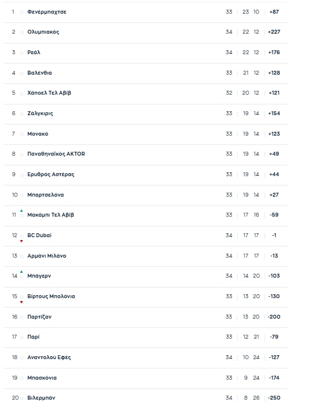 Με αυτό το αποτέλεσμα, η Ντουμπάι BC έπεσε στο 17-17 (σ.σ η Μακάμπι ανέβηκε στο 17-16 με πρόγραμμα… βουνό) και ο Παναθηναϊκός έχει την ευκαιρία την Παρασκευή (27/3) κόντρα στη Μονακό να ανέβει στις 20 νίκες.