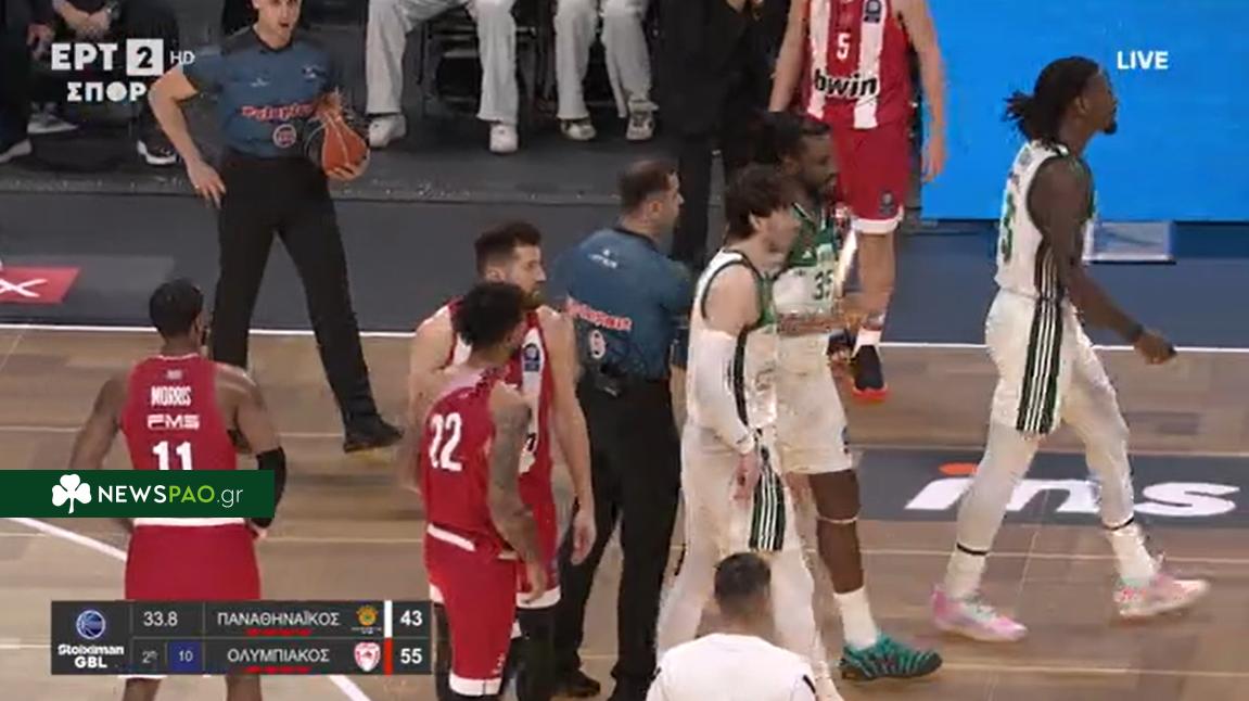 Τεράστια ένταση ξέσπασε λίγο πριν από το τέλος του πρώτου ημιχρόνου στο ντέρμπι ανάμεσα σε Παναθηναϊκό και Ολυμπιακό για τη 23η αγωνιστική της Stoiximan GBL, σε μια φάση που προκάλεσε έντονες αντιδράσεις και πολλές συζητήσεις.