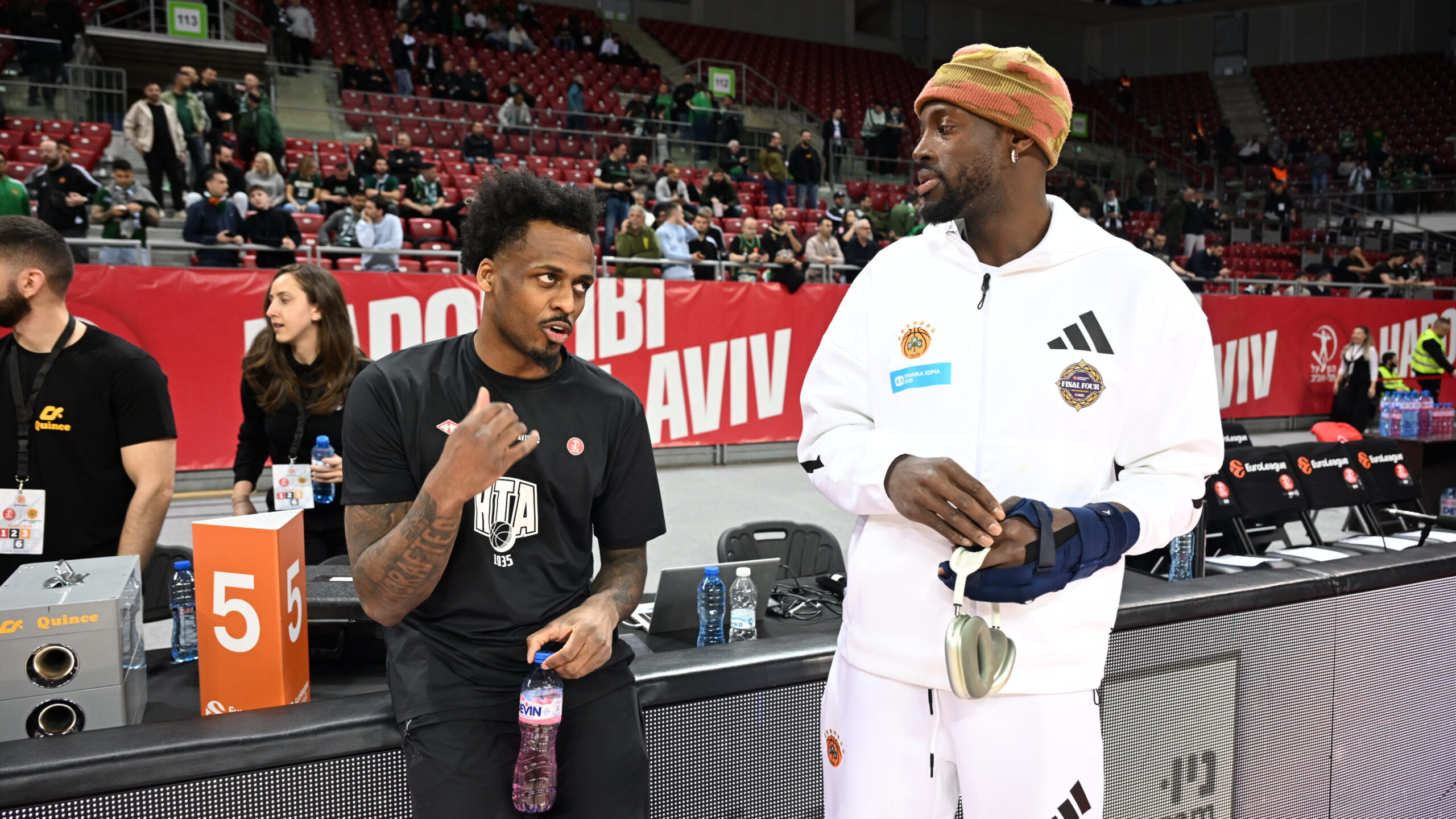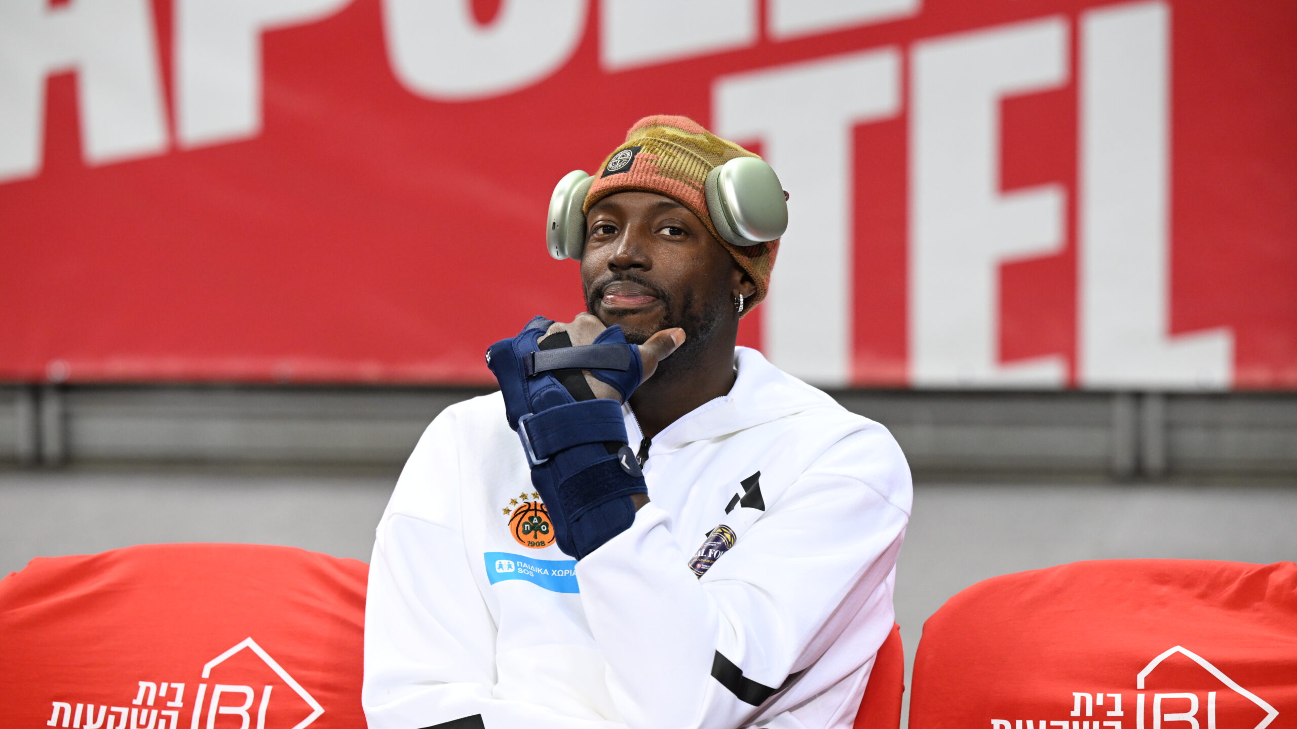 Ο Τζέριαν Γκραντ εμφανίστηκε με νάρθηκα στο χέρι για να παρακολουθήσει την αναμέτρηση του Παναθηναϊκού Aktor με τη Χάποελ Τελ Αβίβ.