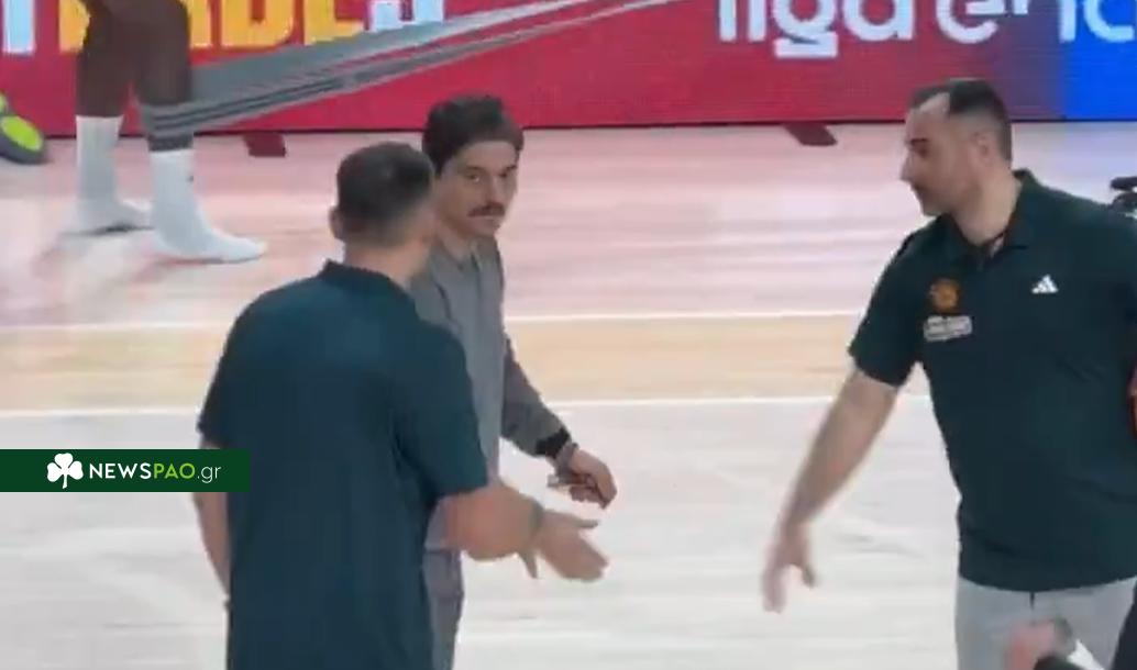 Ο ισχυρός άνδρας του Τριφυλλιού εμφανίστηκε στο παρκέ του γηπέδου των Καταλανών με τον ίδιο να έχει χειραψίες με μέλη του τιμ της ομάδας.