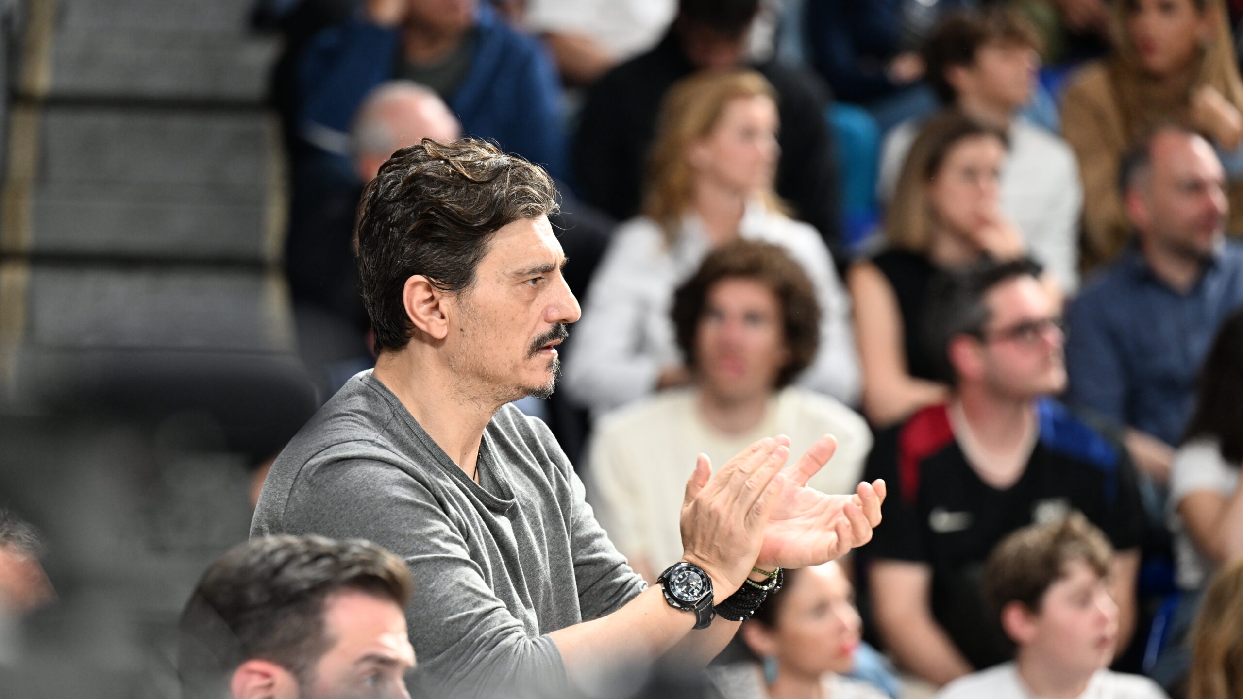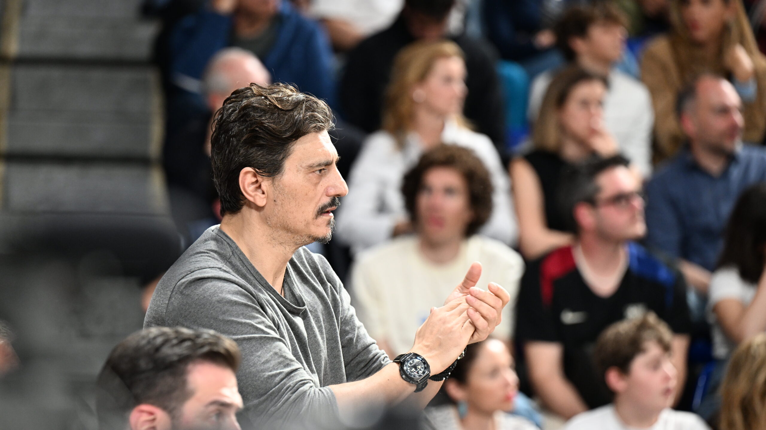 Ο Δημήτρης Γιαννακόπουλος εμψύχωσε τους παίκτες στα αποδυτήρια του γηπέδου πριν από το τζάμπολ στον αγώνα με την Μπαρτσελόνα και εν συνεχεία κάθισε στη θέση του για να παρακολουθήσει τον κρίσιμο αγώνα του Παναθηναϊκού.