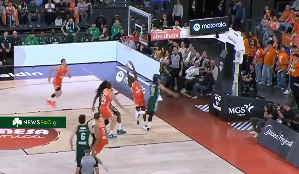 Παλικαρίσιο καλάθι και φάουλ από τον αρχηγό του Παναθηναϊκού για το 27-22.