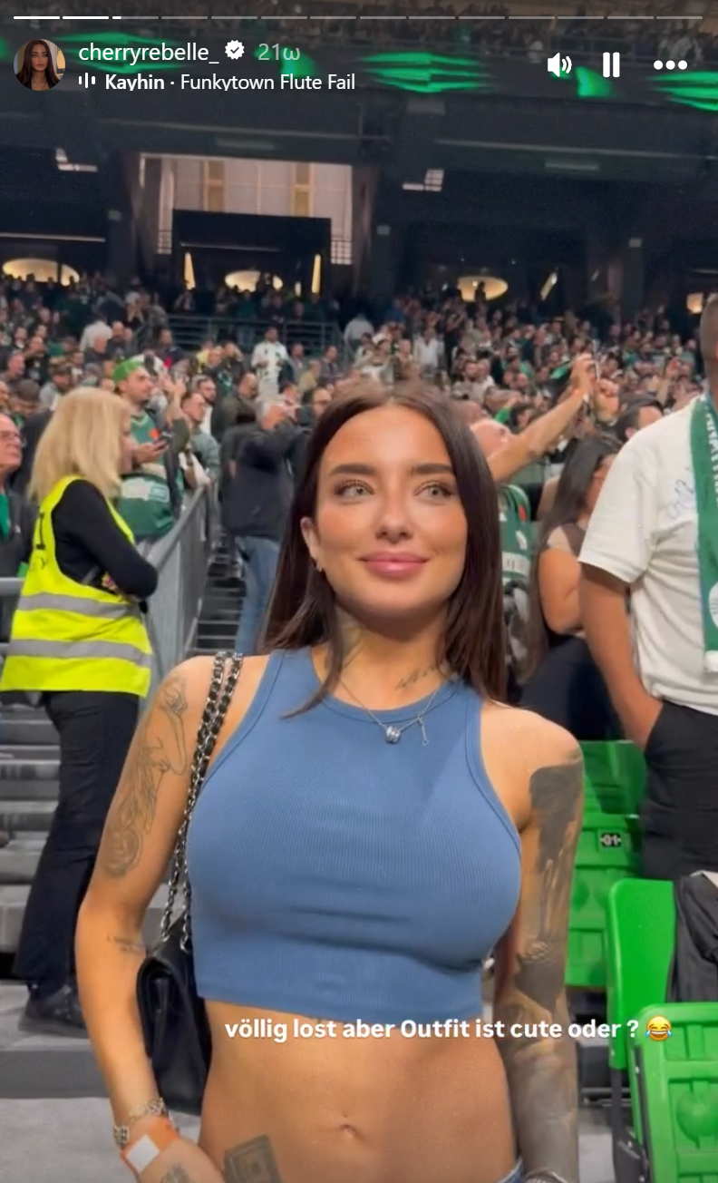 Η Λεοντίν Γκούντελβαϊν ανέβασε αρκετές «ιστορίες» από το γήπεδο των πρασίνων με την ίδια να μη δείχνει ιδιαίτερα «συνδεδεμένη» με τον αθλητισμό: «Το πρώτο μου παιχνίδι μπάσκετ και δεν καταλαβαίνω τι συμβαίνει», έγραψε χαρακτηριστικά.