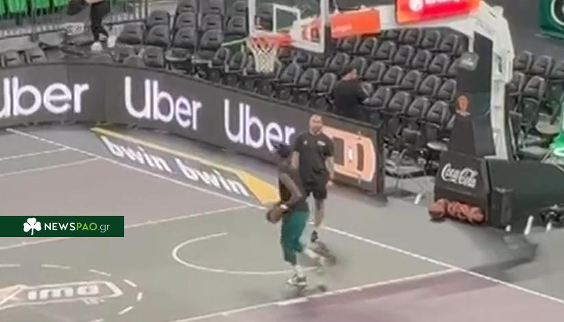 Ο Αμερικανός φόργουορντ του Παναθηναϊκού υπό τη συνοδεία κλασσικής μουσικής έκανε τα πρώτα του σουτάκια όντας απόλυτα αφοσιωμένος στην αποψινή αναμέτρηση της ομάδας απέναντι στη Μονακό.