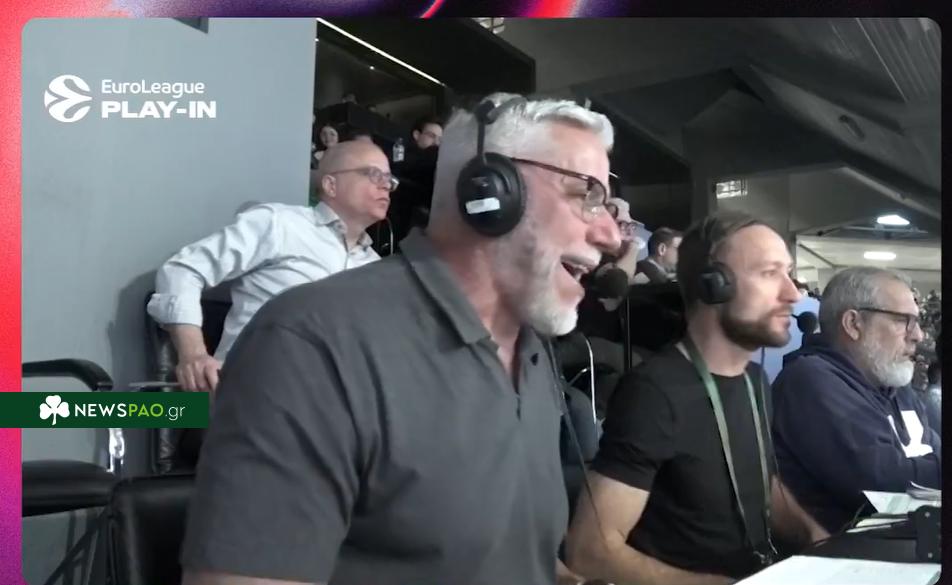 Ο Τιμ Λονγκ και ο Τζο Αρλάουκας αντέδρασαν με έντονο ενθουσιασμό στο κάρφωμα του παίκτη του Παναθηναϊκού, σε μια στιγμή που αποτύπωσε πλήρως την ένταση του αγώνα.