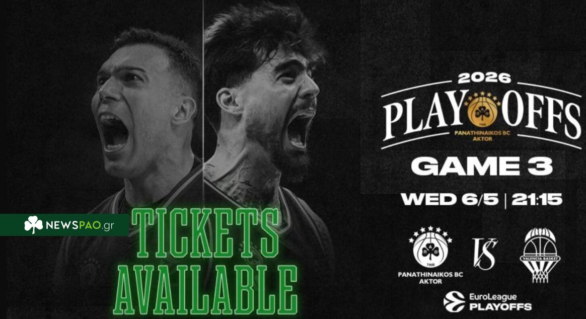 «Η ΚΑΕ Παναθηναϊκός AKTOR ενημερώνει πως τέθηκαν στη διάθεση των φιλάθλων της τα εισιτήρια για το Game 3 της σειράς των Playoffs της EuroLeague, απέναντι στην Valencia Basket (06/05, 21:15).