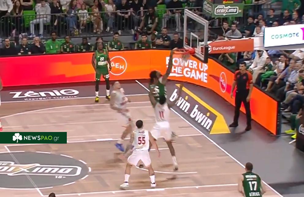 Ο Γάλλος σέντερ του Παναθηναϊκού, έδωσε το highlight της εβδομάδας με το απίθανο κάρφωμα σε ασίστ του Κώστα Σλούκα.