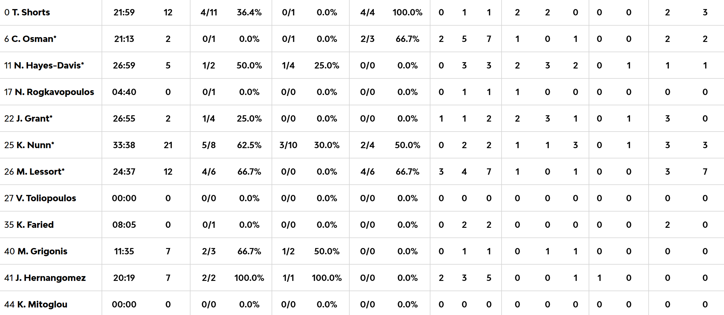 Νάιτζελ Χέιζ-Ντέιβις (6/10): Ο ρόλος του ήταν κυρίως στην άμυνα, δεν πήρε κάποιο μεγάλο σουτ. Μοίρασε -πιθανότατα- την ασίστ των πλέι οφ.