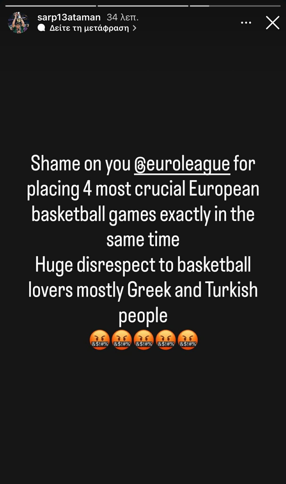 Τεράστια ασέβεια στους φιλάθλους του μπάσκετ, κυρίως στους Έλληνες και τους Τούρκους φιλάθλους», ήταν το μήνυμά του.