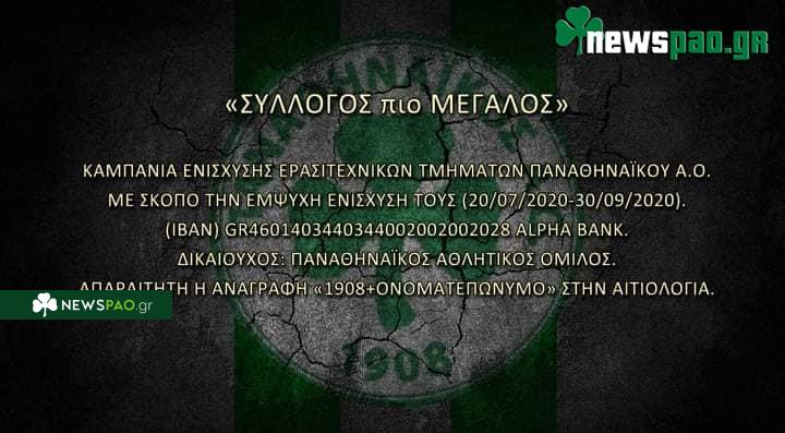 Ο «Σύλλογος πιο Μεγάλος» ευχαρίστησε τον κόσμο που συνεχίζει να καταθέτει χρήματα στην καμπάνια, για την προσπάθεια που γίνεται στον Ερασιτέχνη Παναθηναϊκό.
