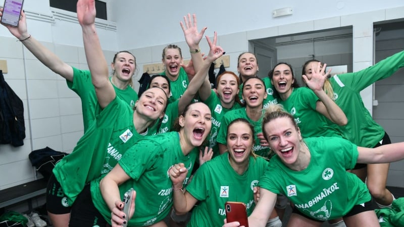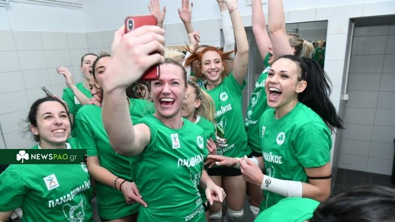 Τα κορίτσια του Παναθηναϊκού άρχισαν τους χορούς και τα πανηγύρια στα αποδυτήρια, πριν επανεμφανιστούν για να σηκώσουν το Κύπελλο Ελλάδος.