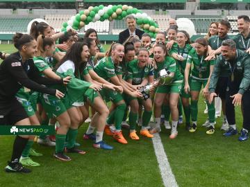 Ο Παναθηναϊκός πανηγύρισε την άνοδο του τμήματος ποδοσφαίρου γυναικών στη A’ Εθνική Κατηγορία στο γήπεδο της Λεωφόρου μαζί με τους φιλάθλους του.