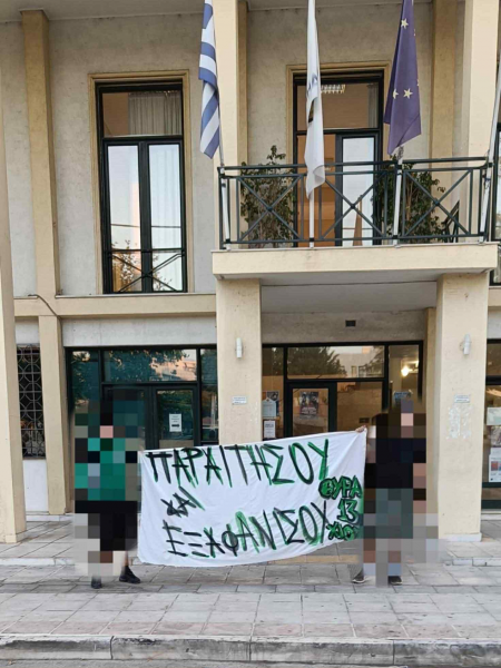 Εξέδωσε ορισγμένη ανακοίνωση και ύψωσε πανό έξω από το Δημαρχείο Χίου η Θύρα 13 με αφορμή τις αισχρές τοποθετήσεις του Ευστάθιου Ρεστέμη με αφορμή ένα τουρνουά πόλο Νέων στο νησί.