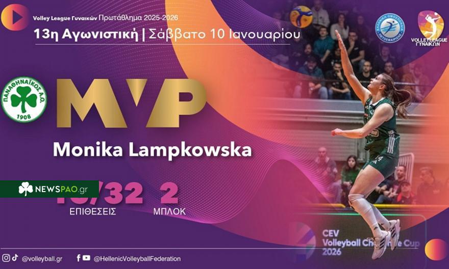 Η Μόνικα Λαμπκόφσκα ανακηρύχθηκε ως η πολυτιμότερη παίκτρια της 13ης αγωνιστικής της Volley League Γυναικών.