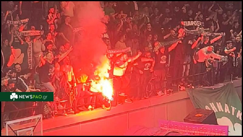 Οι οπαδοί του Παναθηναϊκού άναψαν καπνογόνα και αποθέωσαν τα φίνα κορίτσια για την παρουσία τους στον ευρωπαϊκό τελικό.