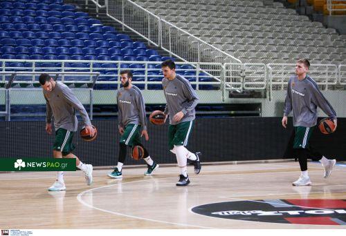 Οι παίκτες του Παναθηναϊκού βγήκαν για το καθιερωμένο ζέσταμα στο παρκέ του ΟΑΚΑ.