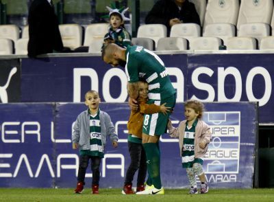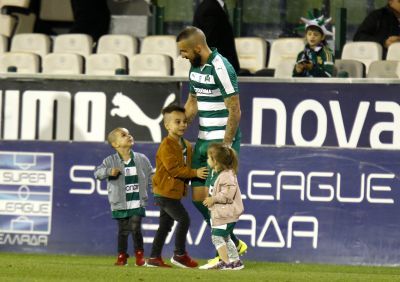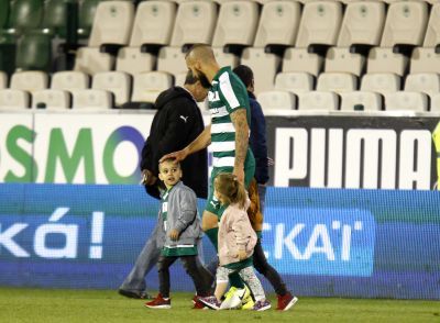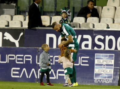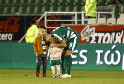 Ο Σουηδός επιθετικός των πρασίνων, σκόραρε μετά από ένα χρόνο και το πανηγύρισε με τα παιδιά του μετά το τέλος του αγώνα.
