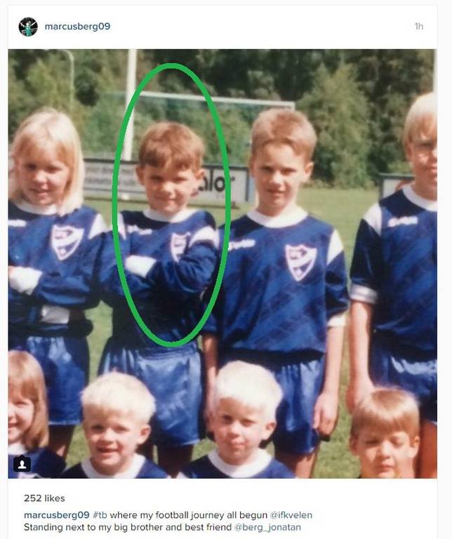 Ο Μπεργκ έβαλε μια φωτογραφία με τον ίδιο σε πολύ μικρή ηλικία, από την εποχή που έπαιζε στην IFK Velen κι έκανε τα πρώτα του ποδοσφαιρικά βήματα. Μάλιστα, στην ίδια φωτογραφία στέκεται δίπλα του και ο μεγάλος αδερφός του, Τζόναταν!