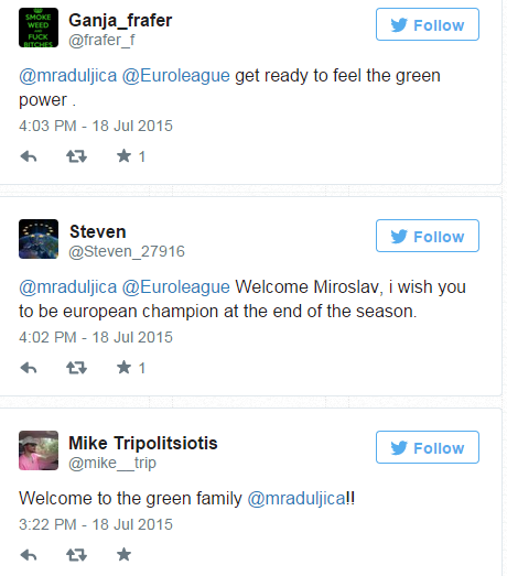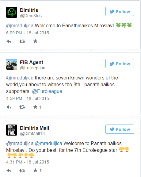 Το πρωί του Σαββάτου ο Μίροσλαβ Ραντούλιτσα δεν άντεξε την αναμονή και… ανακοίνωσε την συμφωνία με τον Παναθηναϊκό μέσω του προσωπικού λογαριασμού του στο twitter.