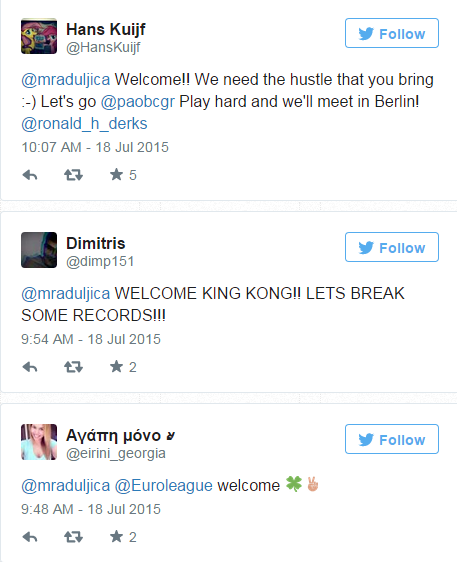 Ο Μίροσλαβ Ραντούλιτσα από το πρωί του Σαββάτου είναι παίκτης του Παναθηναϊκού και οι φίλοι της ομάδας έσπευσαν να τον υποδεχθούν μέσω των social media.
