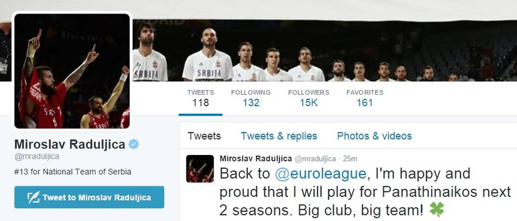 Ο Σέρβος σέντερ έγραψε στον προσωπικό του λογαριασμό στο twitter…