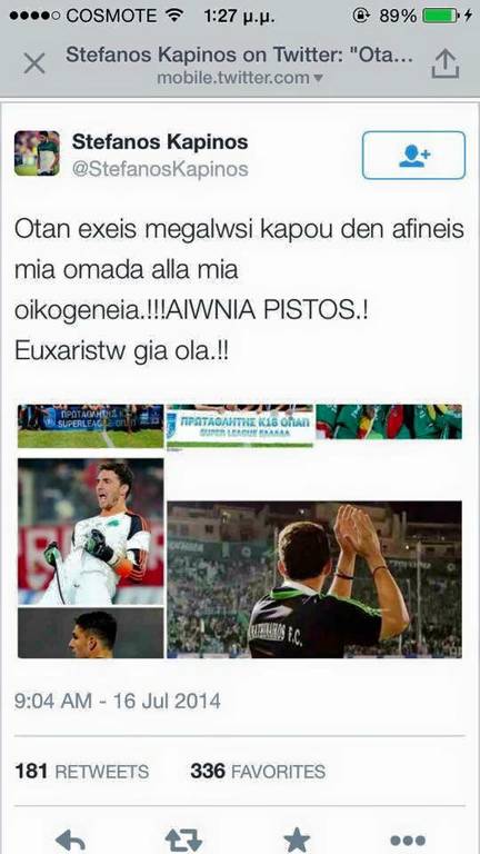 Είναι ένα παιδί που μεγάλωσε και γαλουχήθηκε στον Παναθηναϊκό. Ένα παιδί που δήλωνε Παναθηναϊκός. Ο καθένας ορίζει τη μοίρα του, όμως. Αποφασίζει για το παρόν και το μέλλον του.