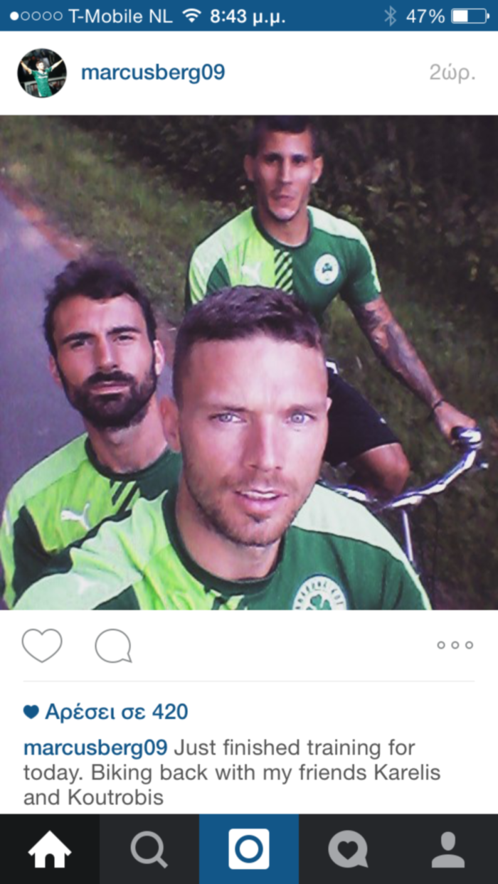 Οι παίκτες του Παναθηναϊκού πηγαίνουν αλλά και αποχωρούν από την προπόνηση με ποδήλατα και ο Μάρκους Μπεργκ δημοσίευσε μία ανάλογη φωτογραφία.