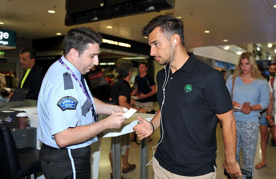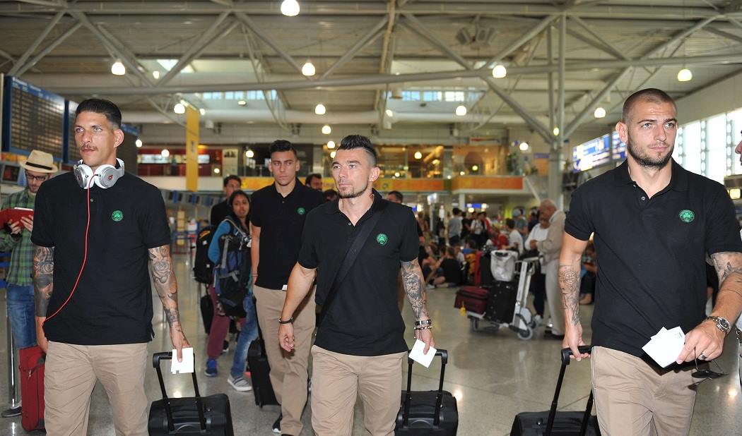 Η αποστολή των «πράσινων» έφτασε λίγο μετά τις 12:00 στο «Ελευθέριος Βενιζέλος» και άπαντες ήταν ντυμένοι με την επίσημη καλοκαιρινή κολεξιόν της ομάδας από τα Marks &’ Spencer που αποτελεί την εταιρία ένδυσης της ομάδας.