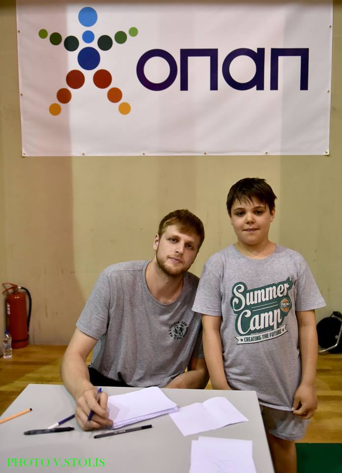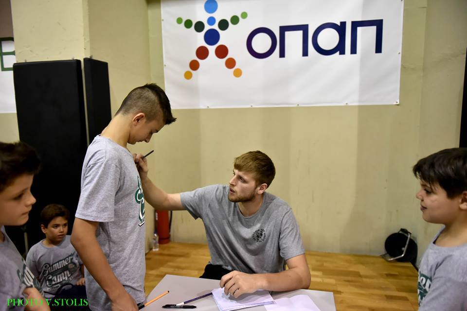 Ο αθλητής της ανδρικής ομάδας των “πρασίνων” φωτογραφήθηκε και υπέγραψε αυτόγραφα στους νεαρούς αθλητές, ολοκληρώνοντας ιδανικά την πρώτη μέρα της Β’ περιόδου του Summer Camp της PAO BC ACADEMY.