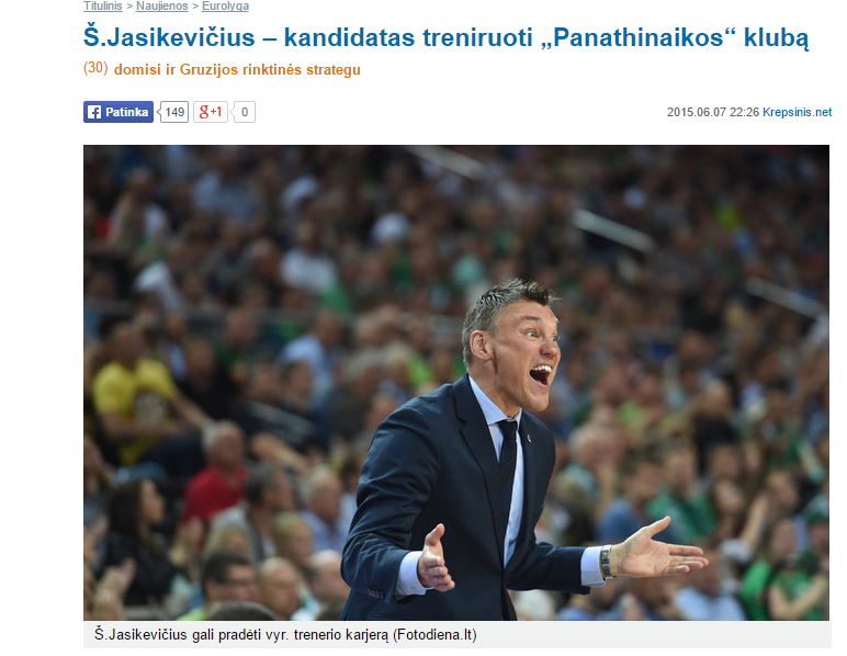 Ο Λιθουανός σταρ σύμφωνα με την ιστοσελίδα «Krepsinis» παρουσιάζεται ως ένας εκ των υποψηφίων για τον πάγκο του «τριφυλλιού» την επόμενη σεζόν.