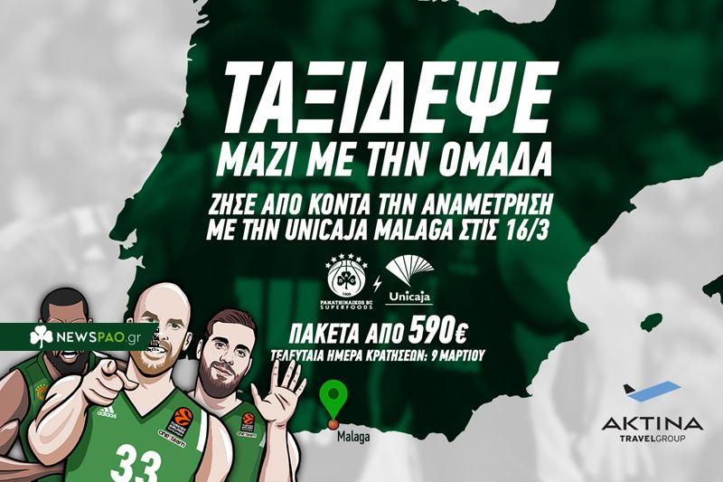 Ζήστε τη μοναδική εμπειρία να ταξιδέψετε μαζί με τους νταμπλούχους Ελλάδας 2017 στην ιδιωτική πτήση για τη Μάλαγα, να διαμείνετε στο ίδιο ξενοδοχείο με την ομάδα (με πρωινό), να γνωρίσετε τους αθλητές και το τεχνικό επιτελείο και να παρακολουθήσετε τον σημαντικό αγώνα με την Ουνικάχα Μάλαγα (16/3, 22.00) από τις εξέδρες του «Palacio de Deportes José María Martín Carpena».