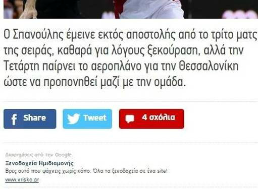 Μετά την ήττα από τον Άρη και τους υπόλοιπους ερασιτεχνισμούς που απέκρυψαν σκόπιμα οι «αδέσμευτοι δημοσιογράφοι» επιβάτες του ερυθρόλευκου τσάρτερ (ξέρετε, τα τσεκ άουτ που είχαν γίνει στο ξενοδοχείο, το ότι δεν είχαν μεριμνήσει για ρούχα προπόνησης καθώς θεωρούσαν σίγουρο το 3-0 και άλλα) άρχισε η επιχείρηση… κάλυψη-απόκρυψη του γεγονότος ότι ανέβηκε άρον- άρον στη Θεσσαλονίκη ο Σπανούλης!
