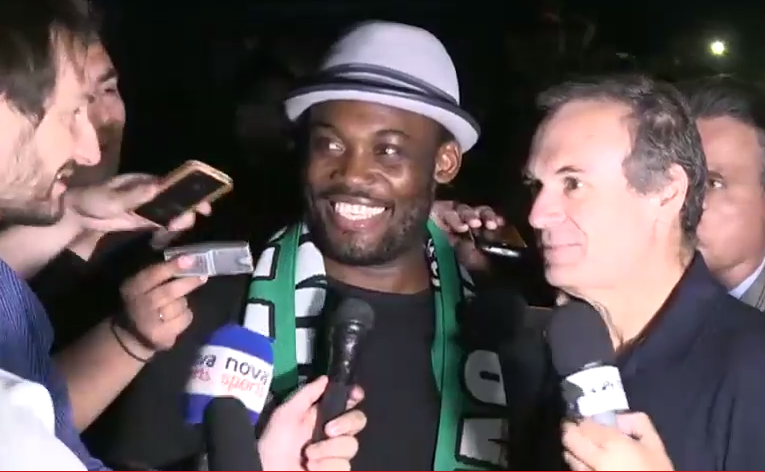 Οι οπαδοί του Παναθηναϊκού περίμεναν εκεί και, μόλις αντίκρισαν το αυτοκίνητο στο οποίο ήταν επιβιβασμένος, άρχισαν να φωνάζουν ρυθμικά το όνομά του. Εκείνος έχοντας στο λαιμό του ένα κασκόλ και με ένας πλατύ χαμόγελο έκανε τις πρώτες του δηλώσεις.