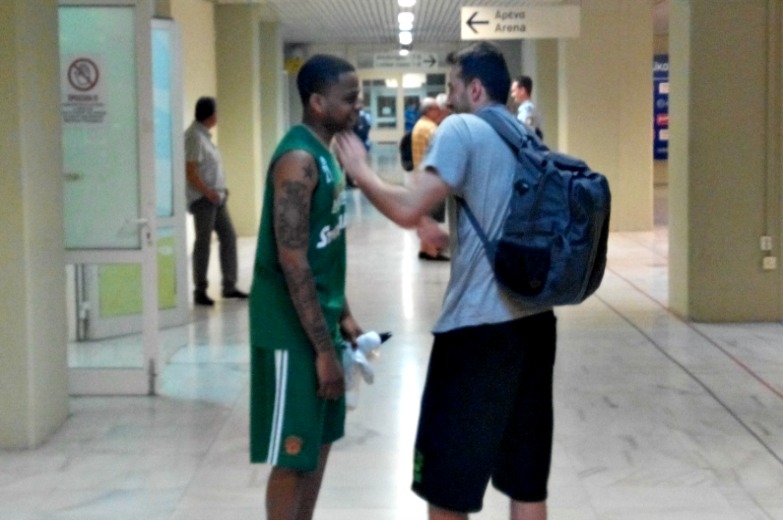 Ο Αμερικανός άσος συνομίλησε μαζί τους, για λίγη ώρα μετά το τέλους του νικηφόρου, για τους «πράσινους» παιχνιδιού με τον ΠΑΟΚ (83-58), έχοντας εγκάρδια συνομιλία με τους Κώστα Χαραλαμπίδη και Βαγγέλη Μαργαρίτη.