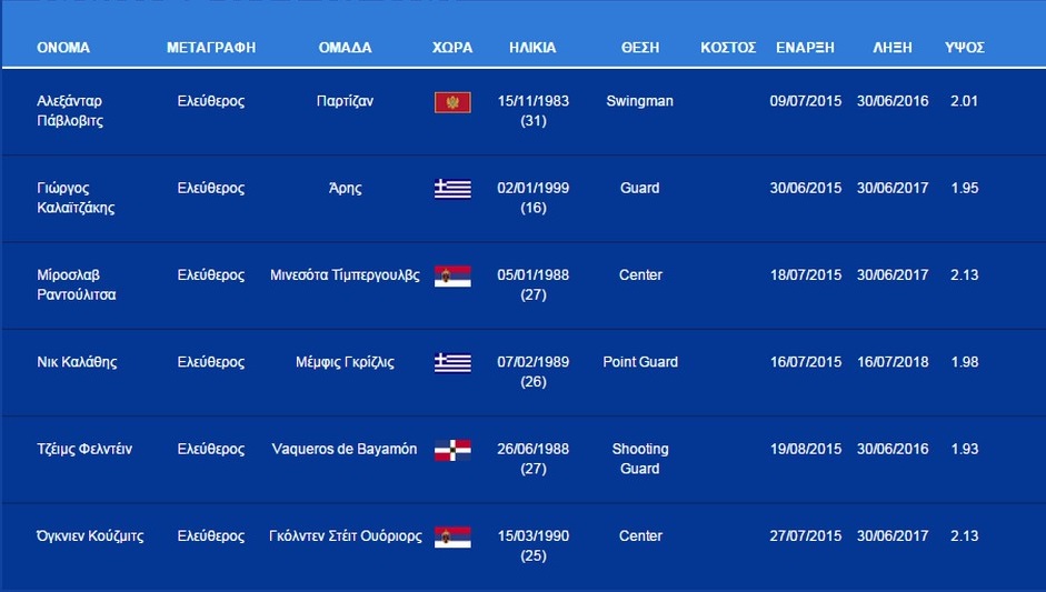 Έφυγαν: Νέλσον, Σλότερ, Μπλουμς, Μαυροκεφαλίδης, Μπατίστα, Διαμαντάκος, Μόργκαν, Κούπερ