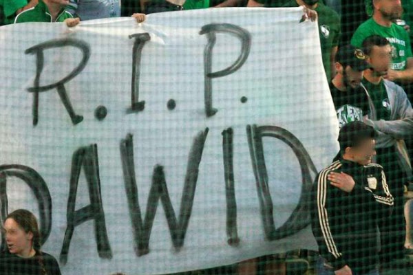 Νεκρός από πλαστική σφαίρα αστυνομικού είχε πέσει πριν από λίγες μέρες ένας Πολωνός οπαδός σε άγριες συμπλοκές μεταξύ φιλάθλων και αστυνομίας σε αγώνα που έγινε στην Βαρσοβία για την 4η κατηγορία. Μια απ’ τις πλαστικές σφαίρες βρήκε στο λαιμό τον 27χρονο, Νταβίντ Ντζιέντζιτς ο οποίος την ώρα που τον πήγαιναν στο νοσοκομείο ξεψύχησε! Οι οπαδοί του Παναθηναϊκού λοιπόν, ανάρτησαν πανό στη μνήμη του στο ματς με τον ΠΑΣ Γιάννινα.