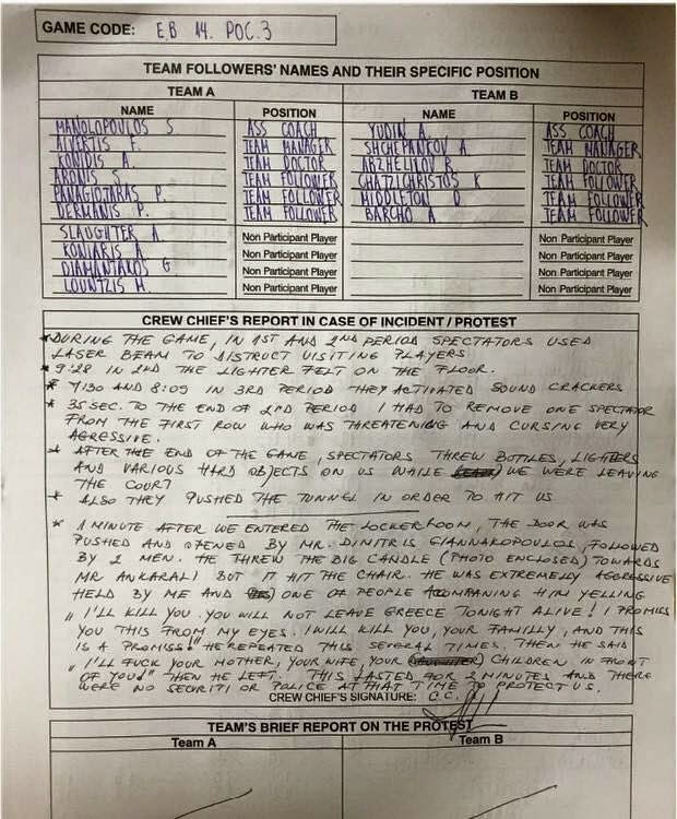Αναλυτικά όσα αναφέρονται στο φύλλο αγώνος: