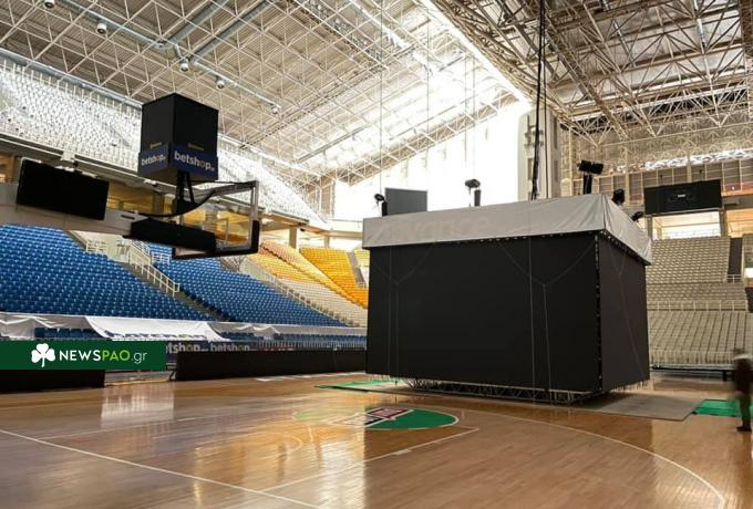 Σε συνεργασία με την ΚΑΕ ΠΑΟ κατέβηκε το cube (οθόνη αποτελεσμάτων) που στηρίζεται στην οροφή του κλειστού και ζυγίζει πάνω από 8 τόννους, ώστε να αποφορτιστεί η στέγη λόγω της αναμενόμενης χιονόπτωσης.